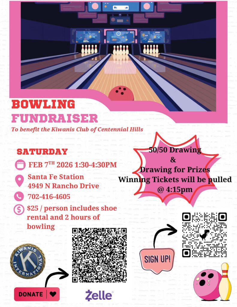 Join the Kiwanis Club of Centennial Hills for an action-packed Saturday afternoon of bowling, fun, and purpose! Whether you’re an experienced bowler or just in it for the laughs, your participation helps us continue our mission of serving kids and strengthening our community.